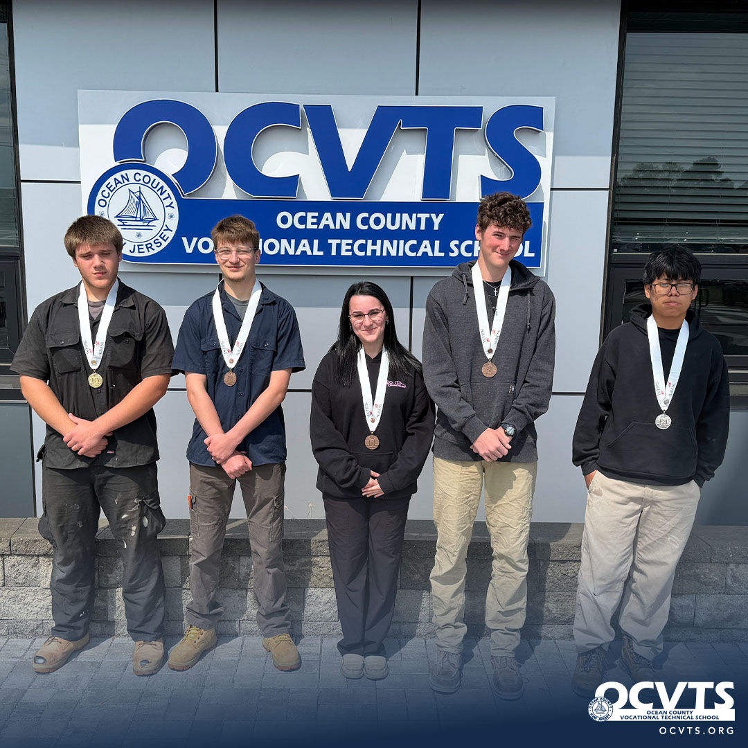 One hundred twenty-six Ocean County Vocational Technical School (OCVTS) students competed in the New Jersey SkillsUSA Championships in March and April at multiple sites across Ocean and surrounding New Jersey counties. Students earned 43 medals—17 gold, 12 silver, and 14 bronze—across more than 57 career and technical education events.