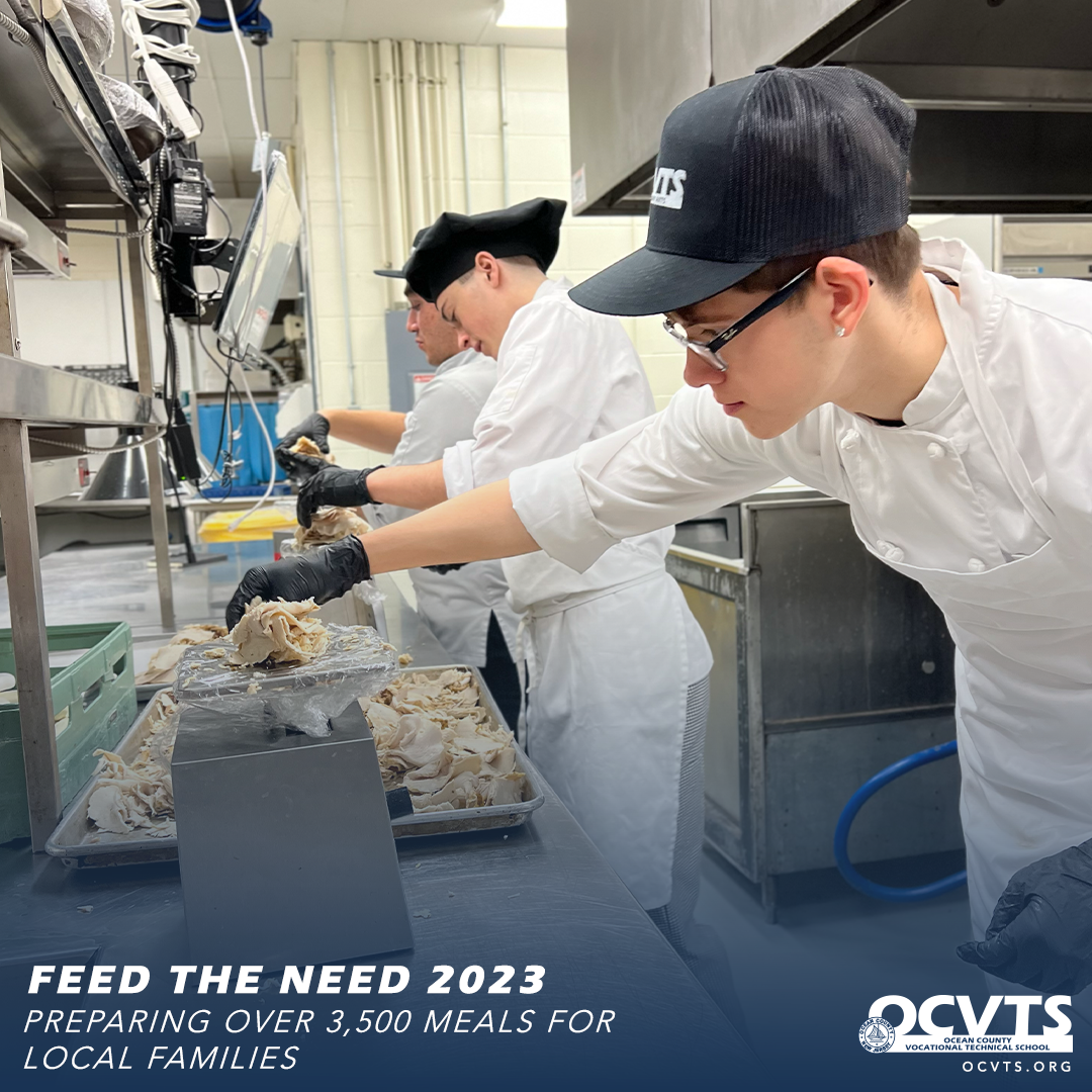Fundraising efforts through the OCVTS Foundation, combined with the generosity of Fulfill, RWJ Barnabas Health, and financial contributions from the public fund this annual community service project which began over 20 years ago. Fulfill provides all of the turkeys, RWJ Barnabas Community Medical Center provides all of the additional food items needed to prepare the meals, and the Ocean County Foundation for Vocational Technical Education provides the packaging and containers needed for distributing these meals.